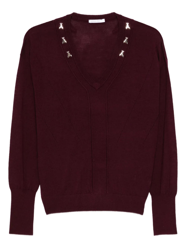 PATRIZIA PEPE Maglia a V in lana con rivetti e logo