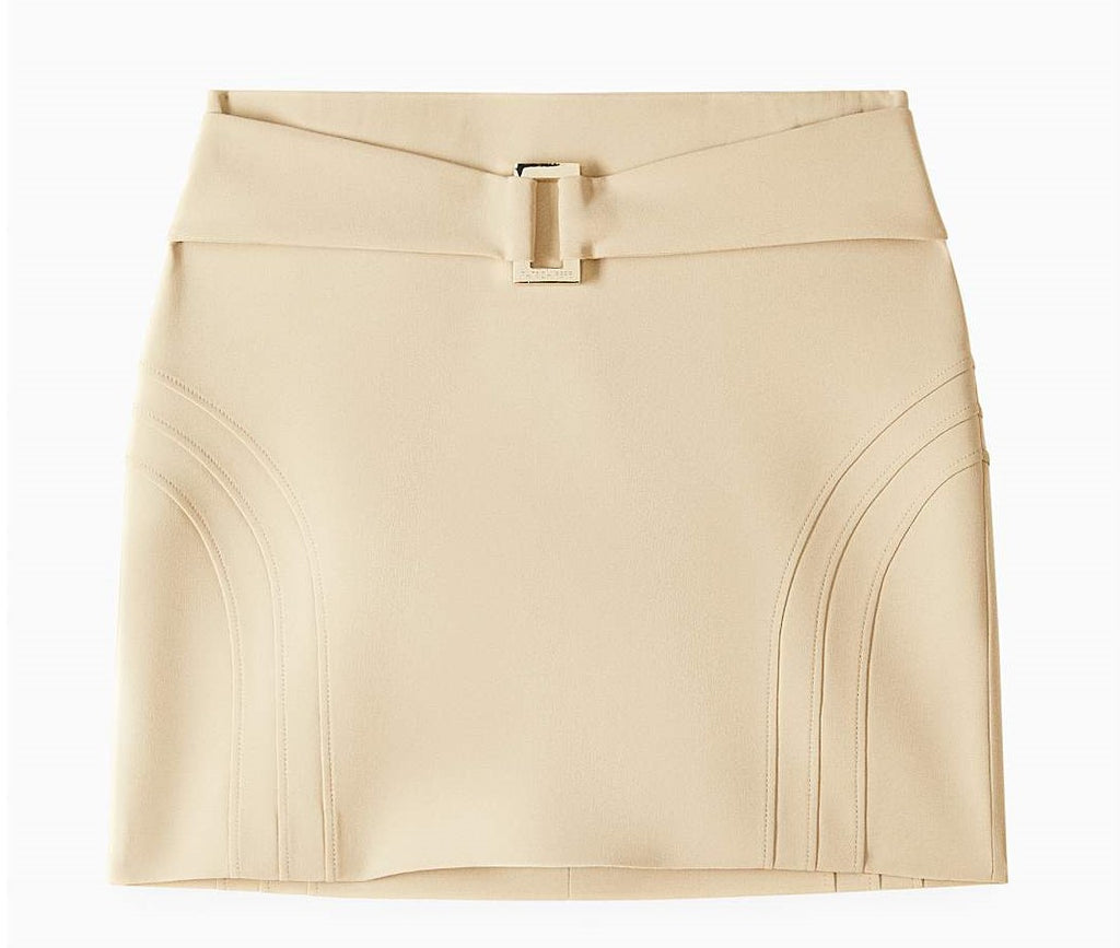 PATRIZIA PEPE Gonna mini in crepe stretch con fibbia e logo