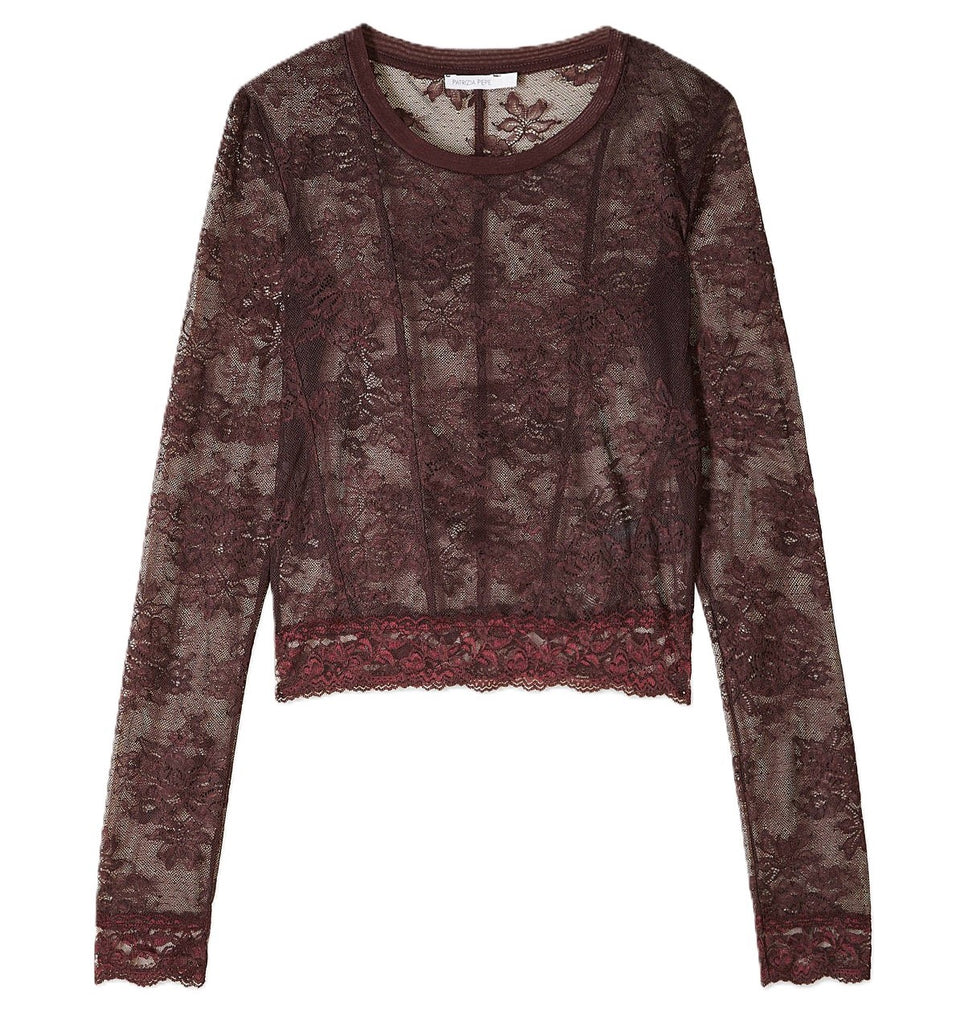 PATRIZIA PEPE Maglia girocollo in pizzo stretch con logo