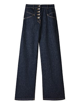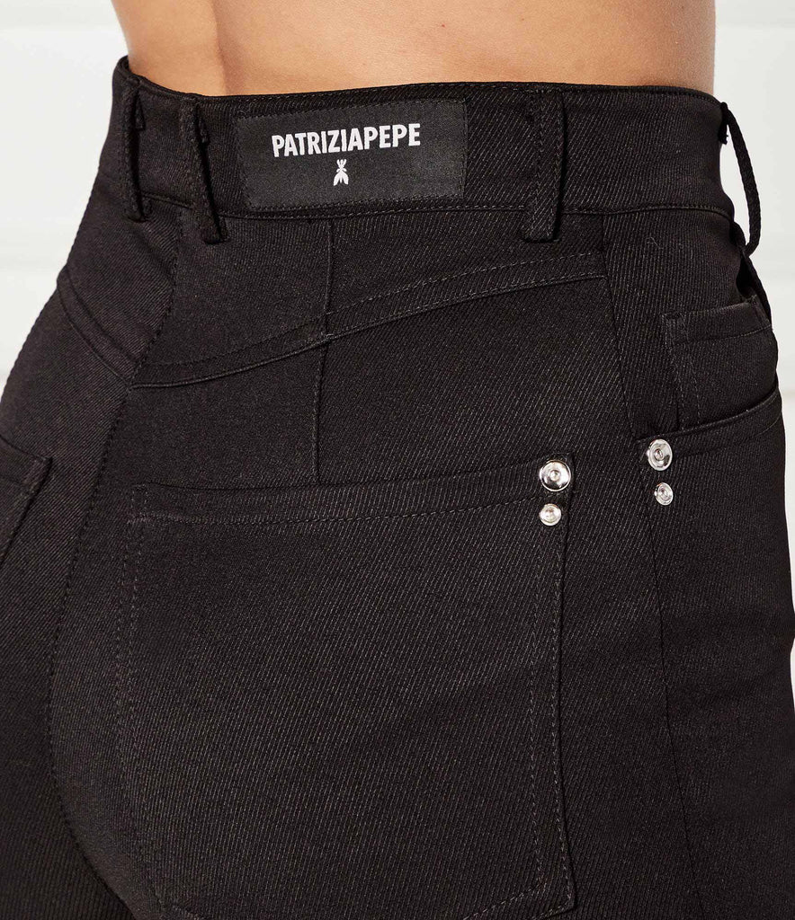 PATRIZIA PEPE Jeans palazzo in denim di cotone stretch con logo