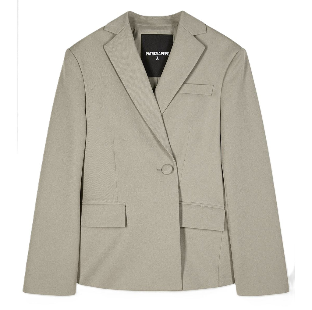 PATRIZIA PEPE Blazer asimmetrico in gabardina stretch a un bottone con logo