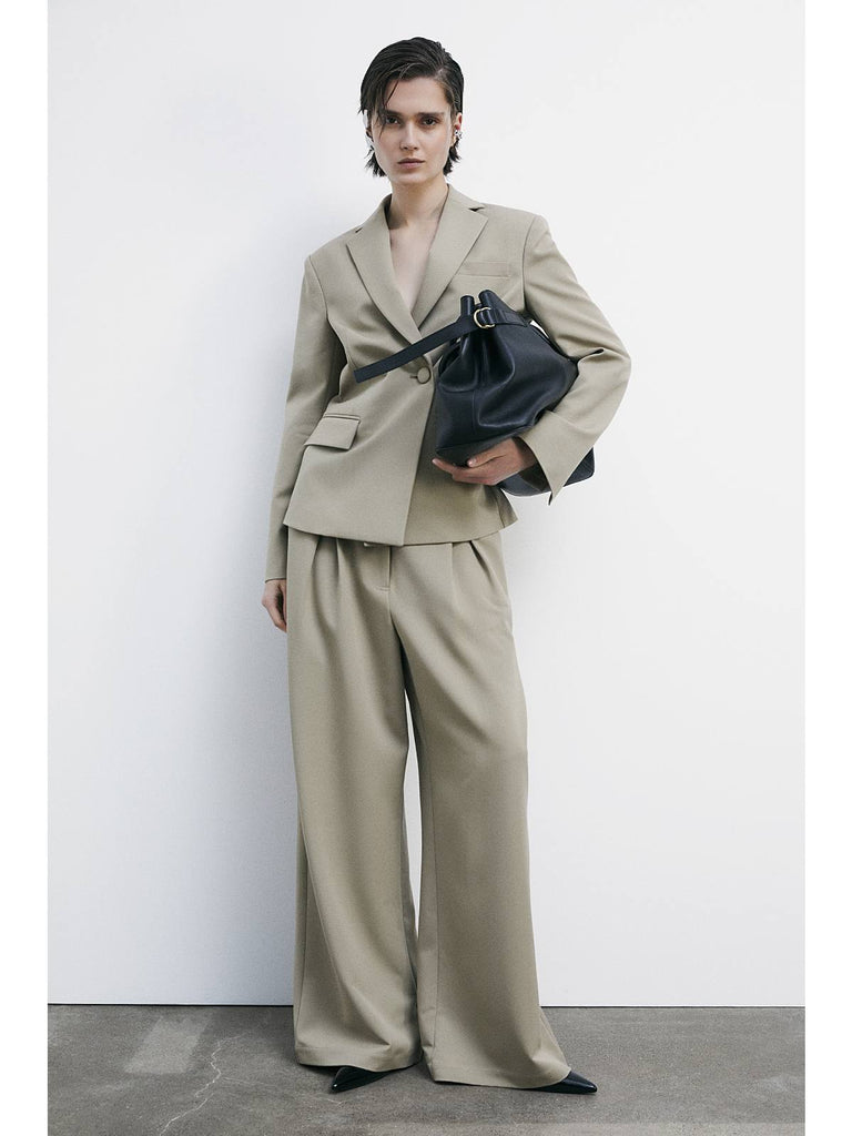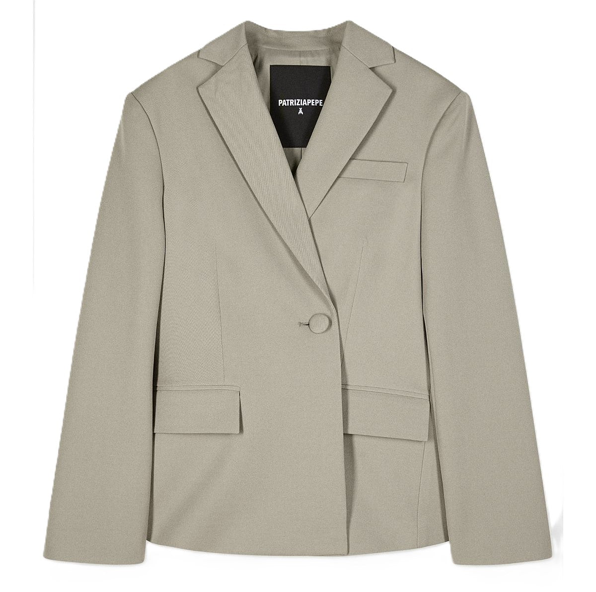 PATRIZIA PEPE Blazer asimmetrico in gabardina stretch a un bottone con logo