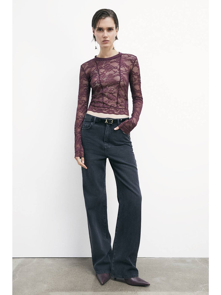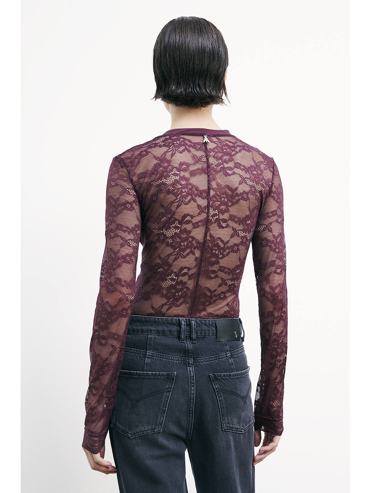 PATRIZIA PEPE Maglia girocollo in pizzo stretch con logo