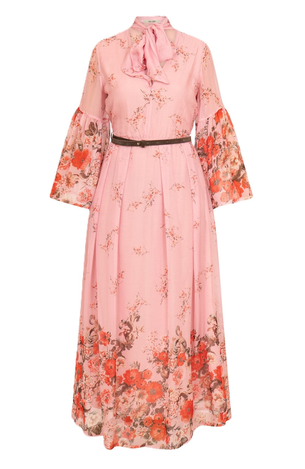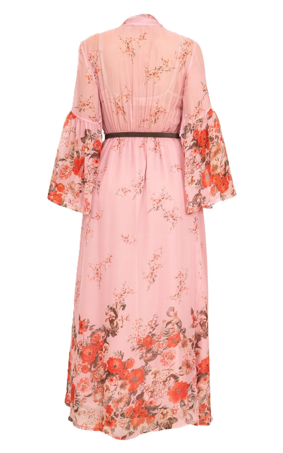 NO-NA' Abito lungo fantasia in misto seta con cintura e logo