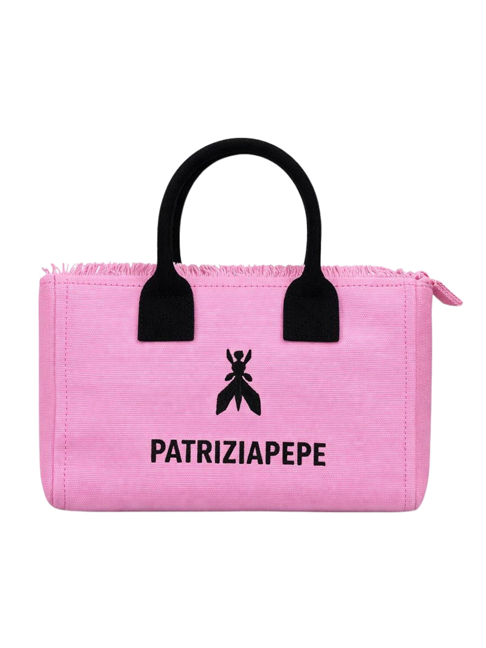 PATRIZIA PEPE Borsa in tela di cotone con tracolla e logo