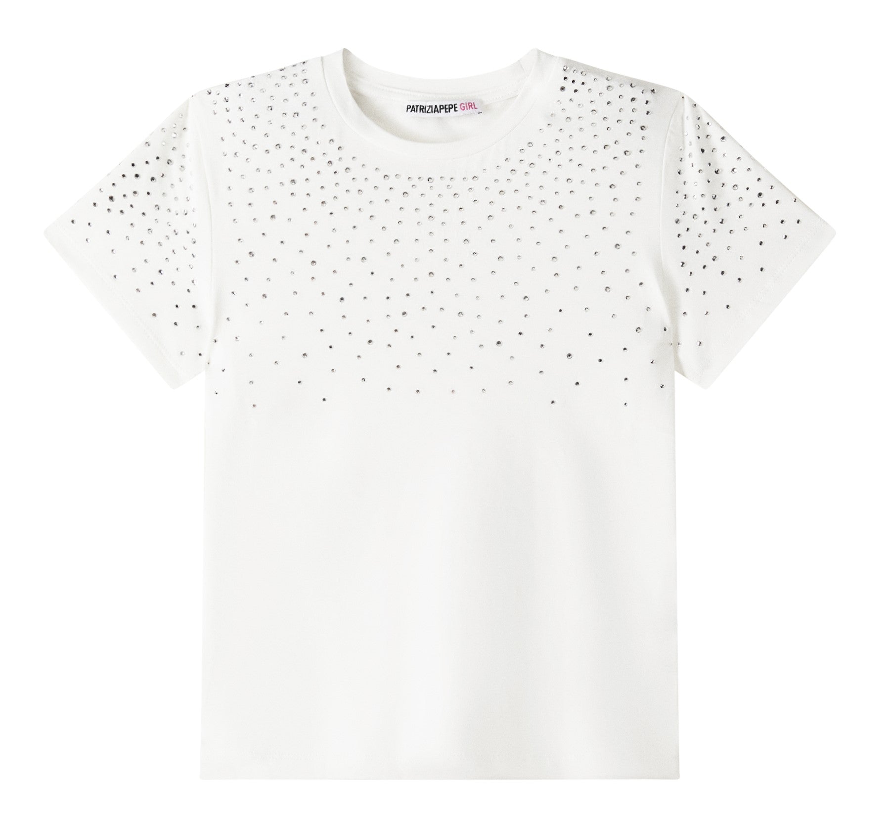 PATRIZIA PEPE T-shirt in jersey di cotone stretch con strass e logo