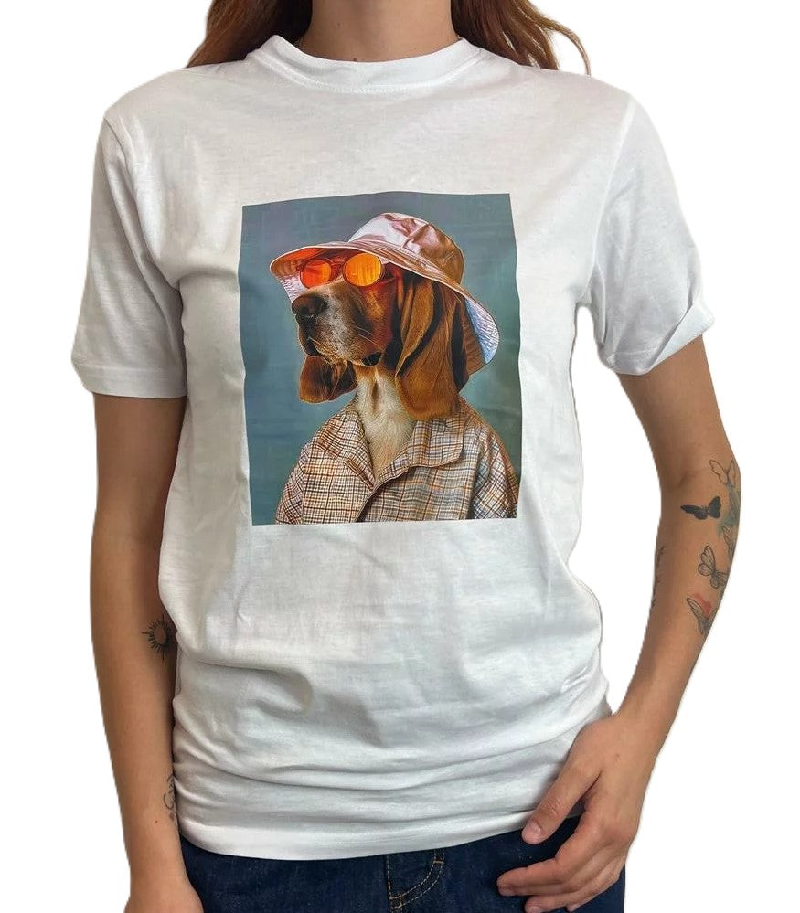 PLEASE T-shirt girocollo in jersey di cotone con stampa e logo