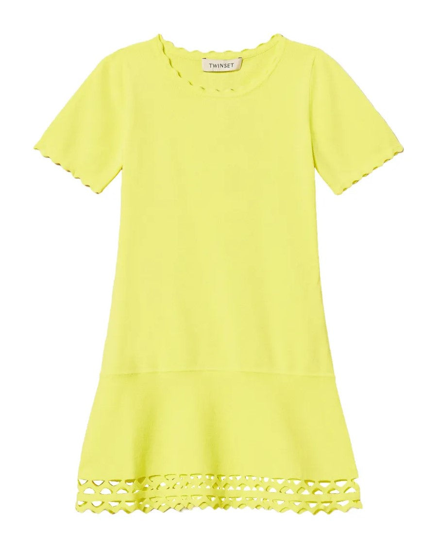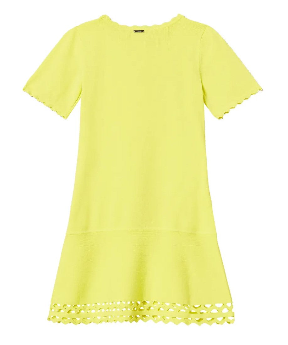 TWIN SET Abito in maglia di viscosa con smerlo e logo