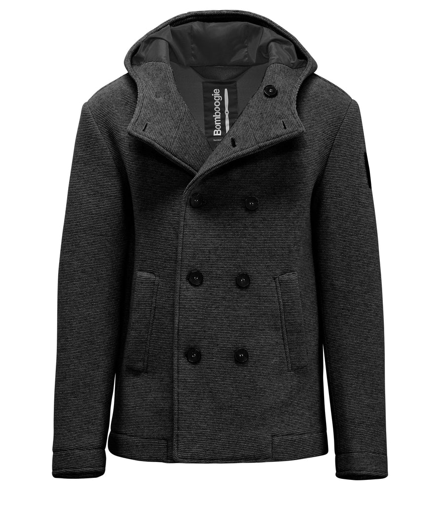 BOMBOOGIE Peacoat in lana cotta con cappuccio e logo