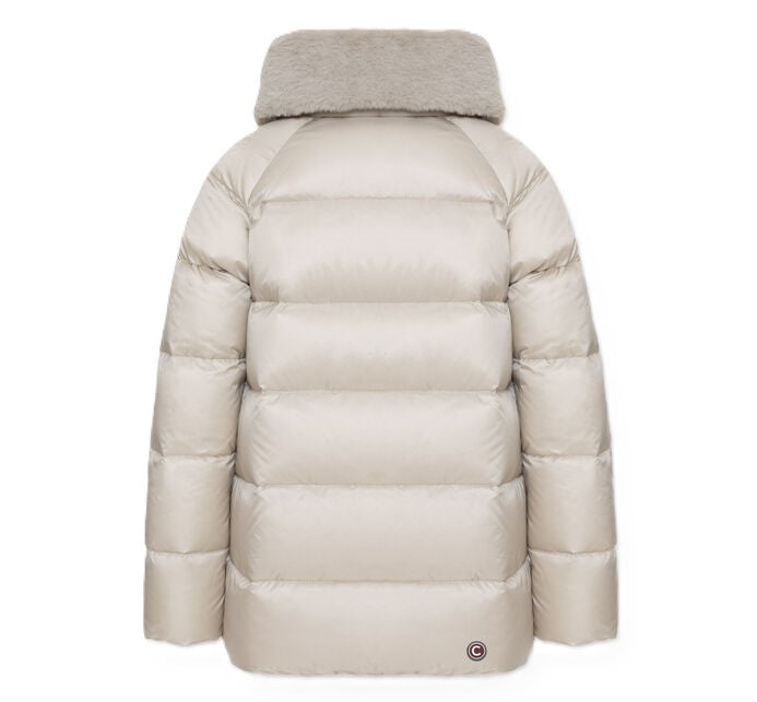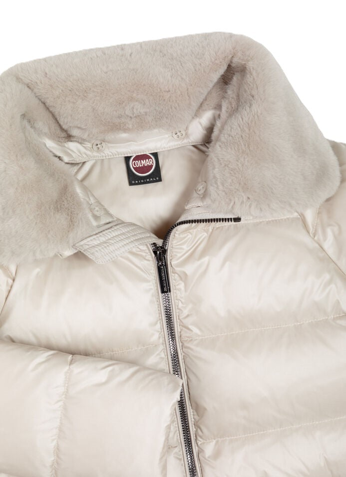 COLMAR Piumino in nylon con collo in pelliccia e logo