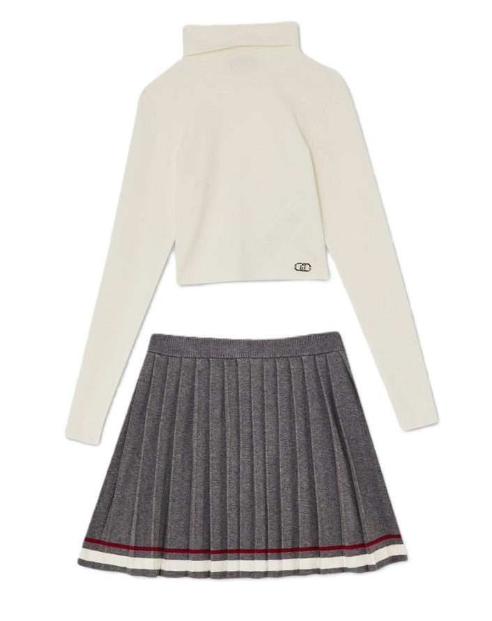 LIU JO Completo dolcevita e gonna a pieghe in maglia di viscosa con logo