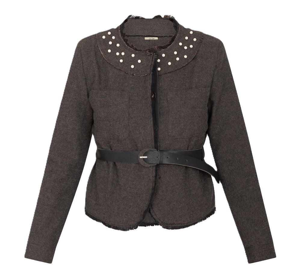 NO-NA' Giacca Chanel in tweed misto lana con perle e logo
