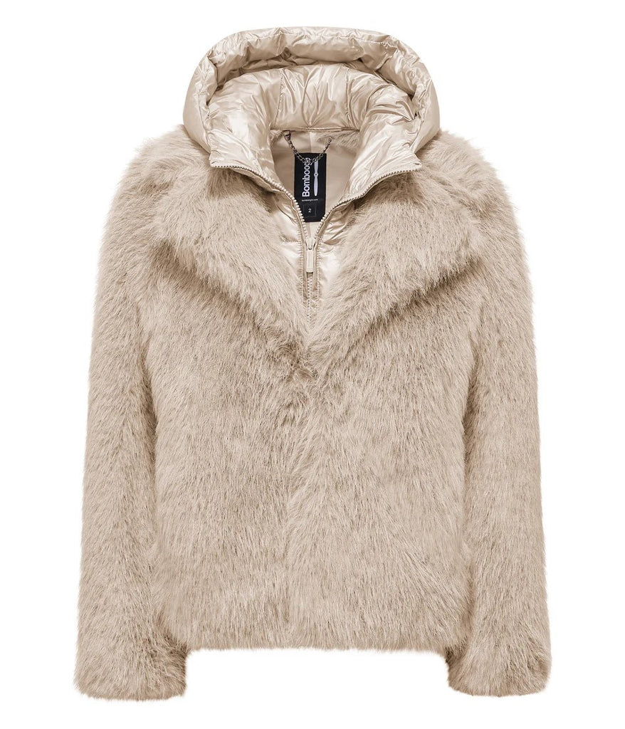BOMBOOGIE Pelliccia ecologica a pelo lungo water resistant con logo