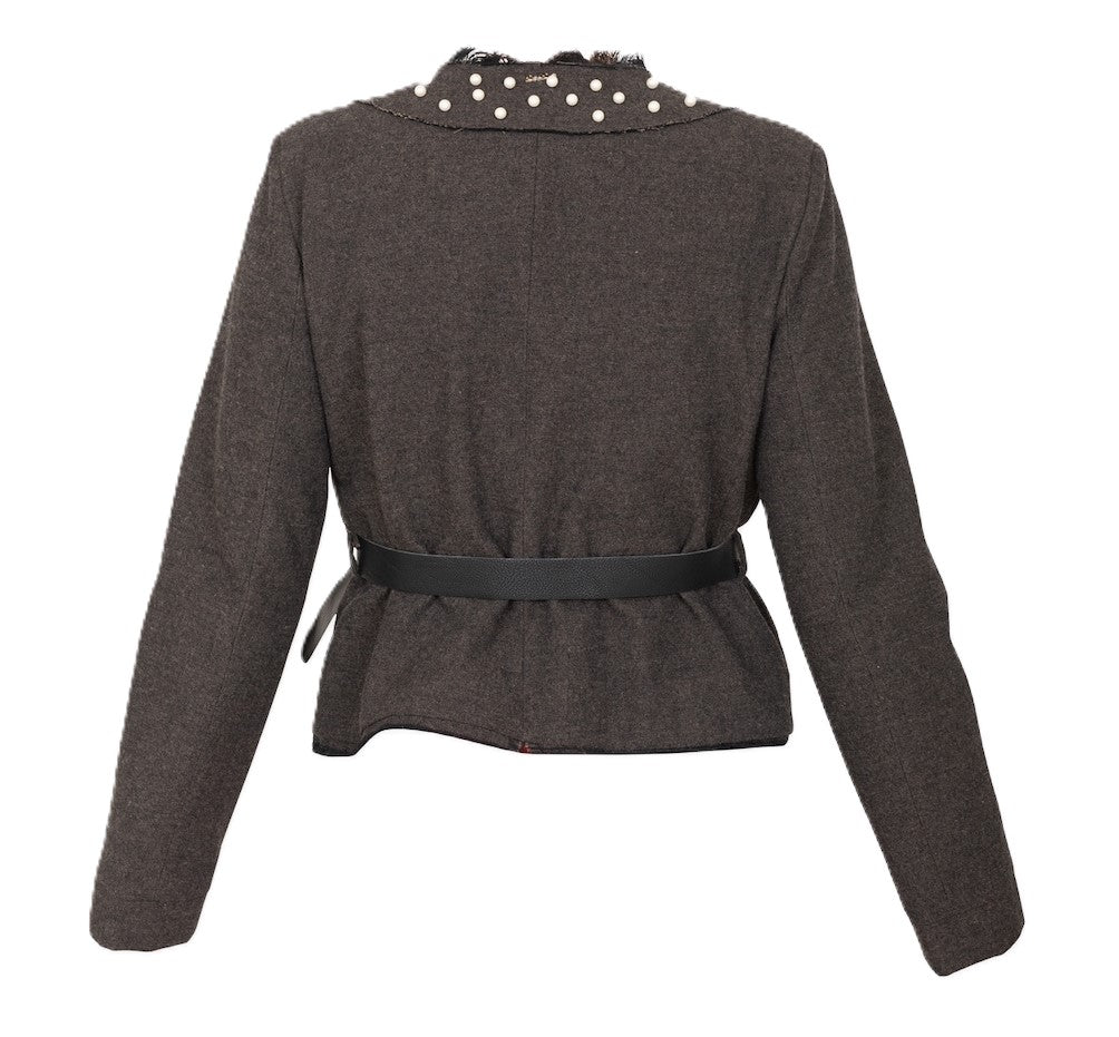 NO-NA' Giacca Chanel in tweed misto lana con perle e logo