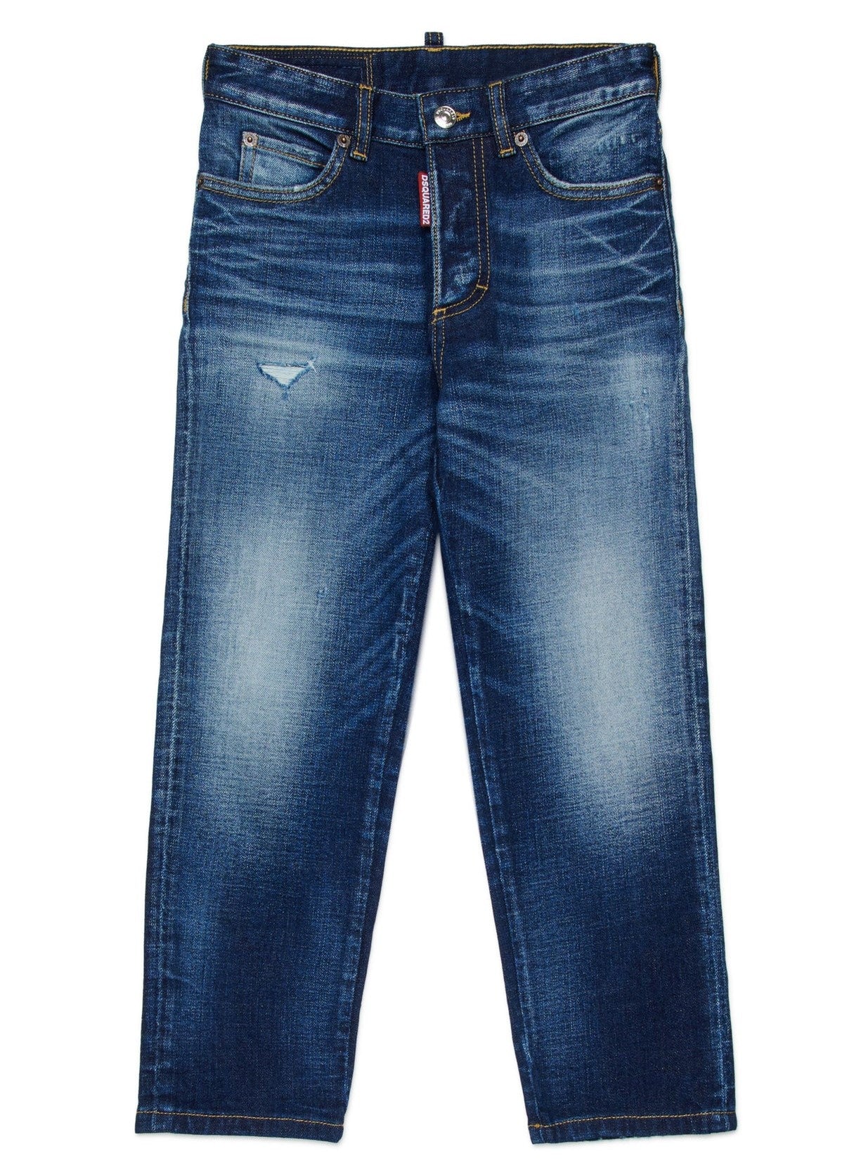 DSQUARED2 Jeans regular fit in denim di cotone stretch destroyed con logo