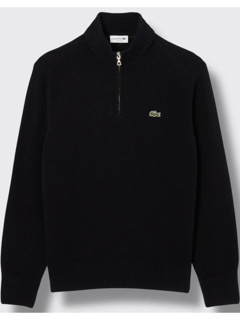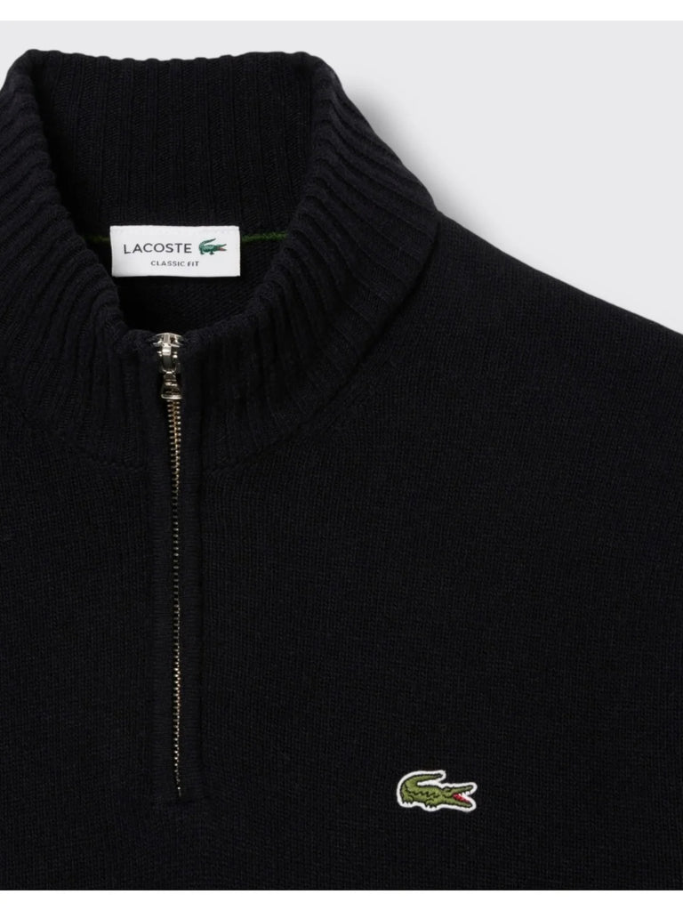 LACOSTE Maglione a collo alto in lana cardata con zip e logo