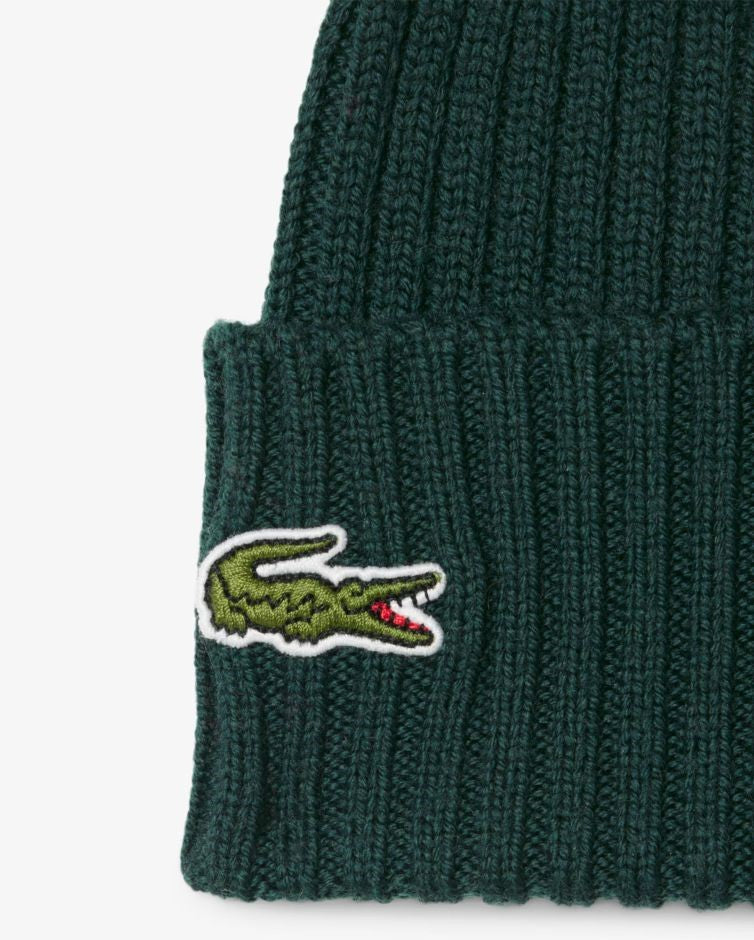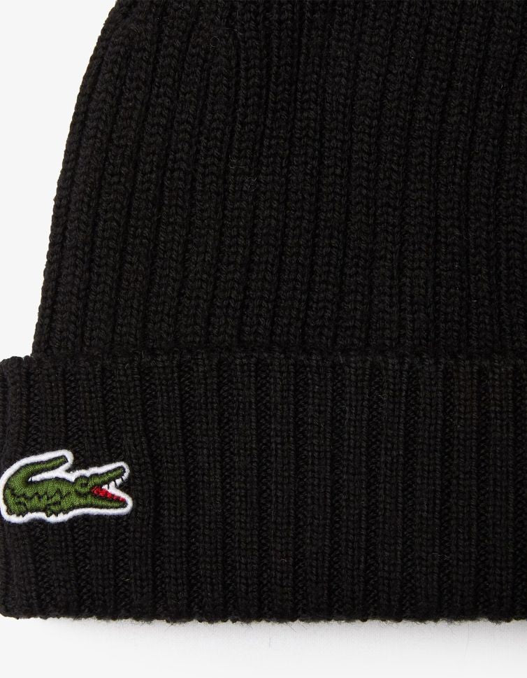 LACOSTE Berretto in lana spazzolata a costine con logo