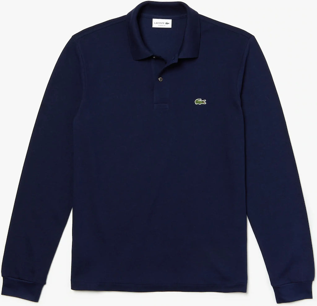 LACOSTE Polo regular fit in piquet di cotone con maniche lunghe e logo