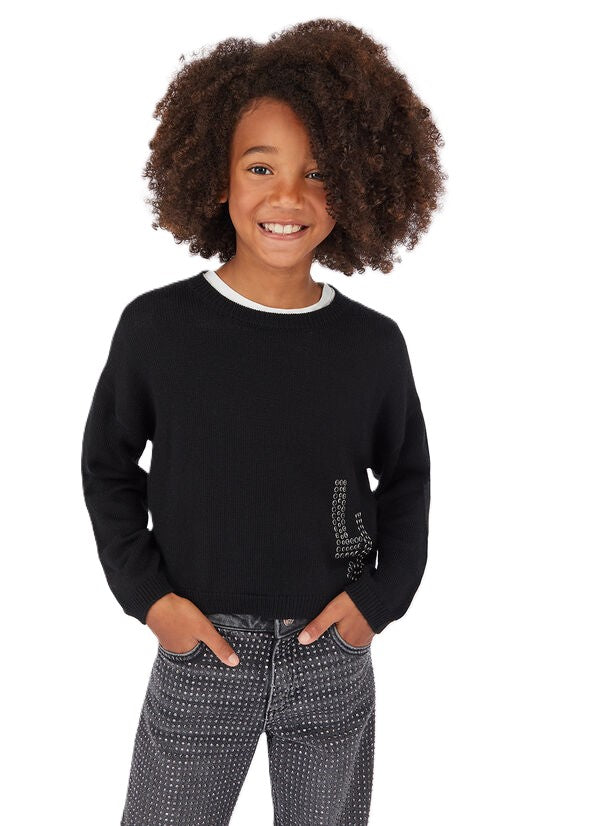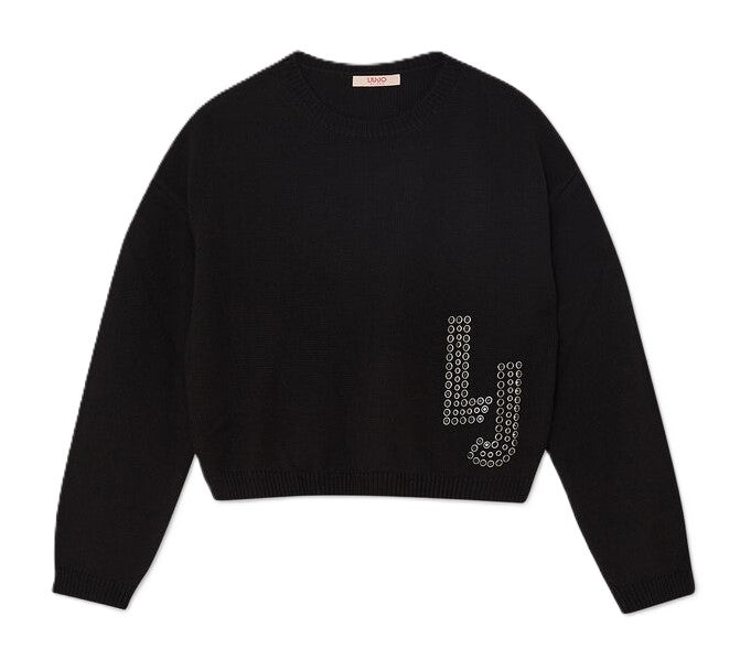LIU JO Maglia girocollo in misto lana con logo di strass