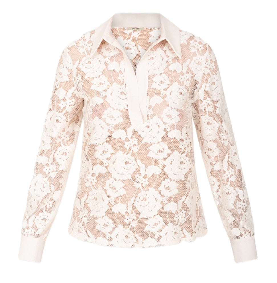 NO-NA' Blusa in pizzo di cotone con collo a polo e logo