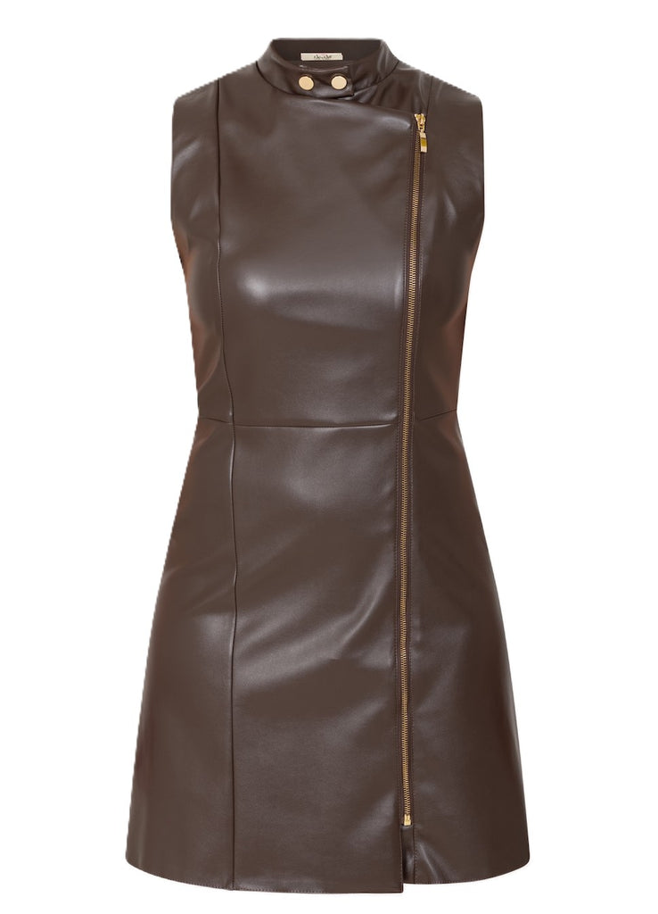 NO-NA' Abito smanicato in ecopelle con zip e logo
