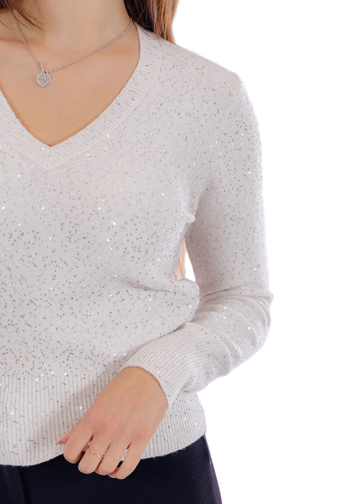 NO-NA' Maglia scollo a V in misto viscosa con micro paillettes e logo