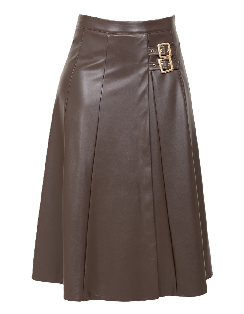 NO-NA' Gonna lunga svasata in ecopelle con fibbie e logo