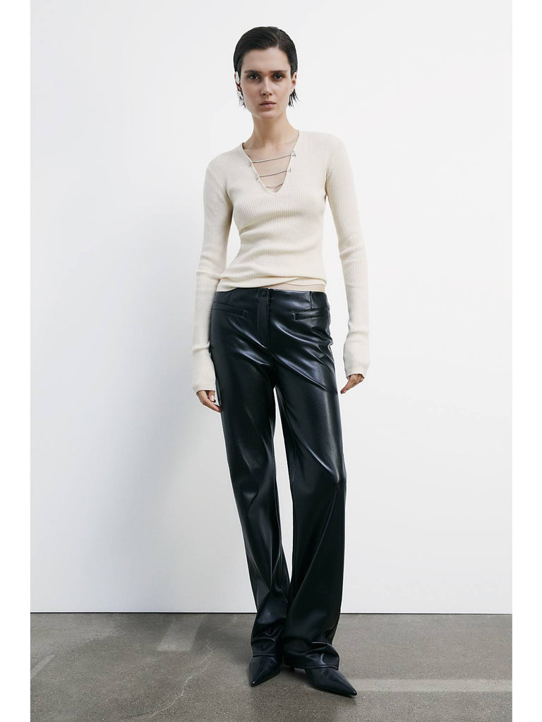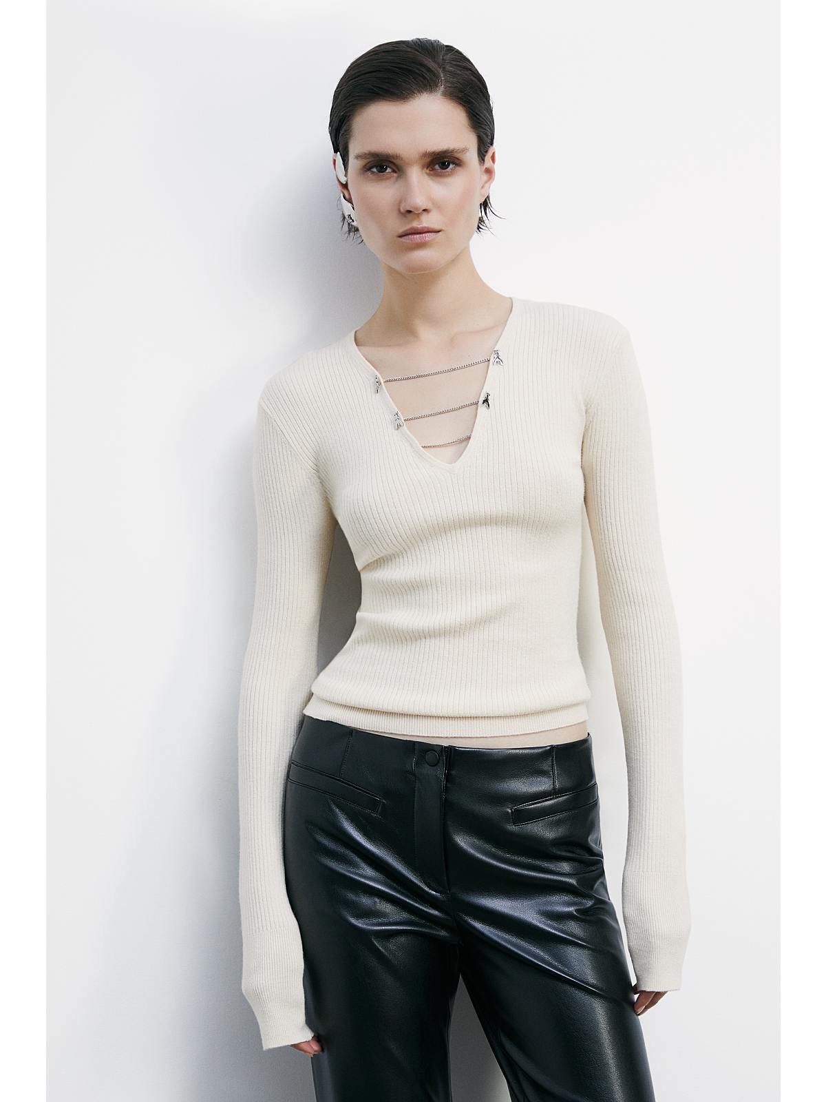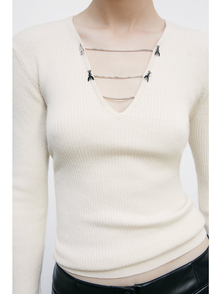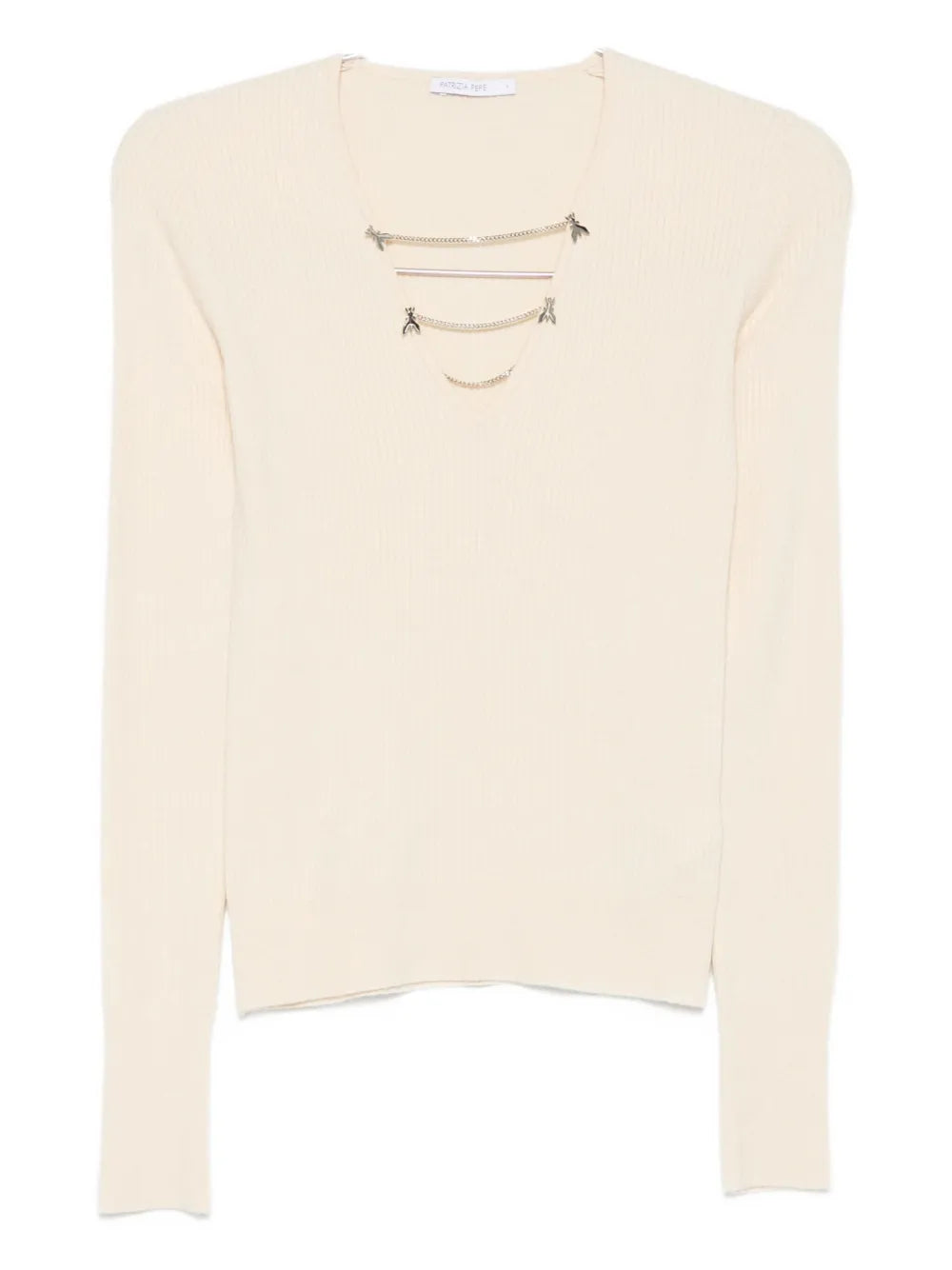 PATRIZIA PEPE Maglia a costine in misto viscosa con logo