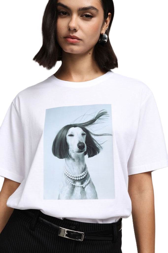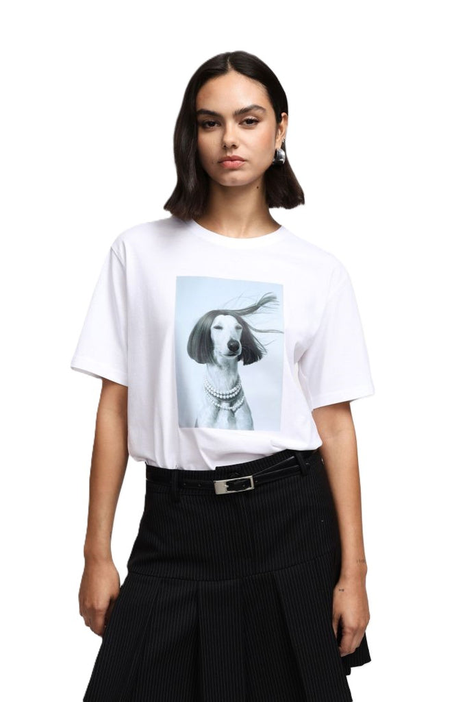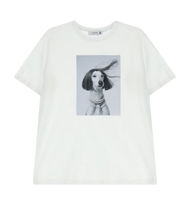 PLEASE T-shirt girocollo in jersey di cotone con stampa e logo