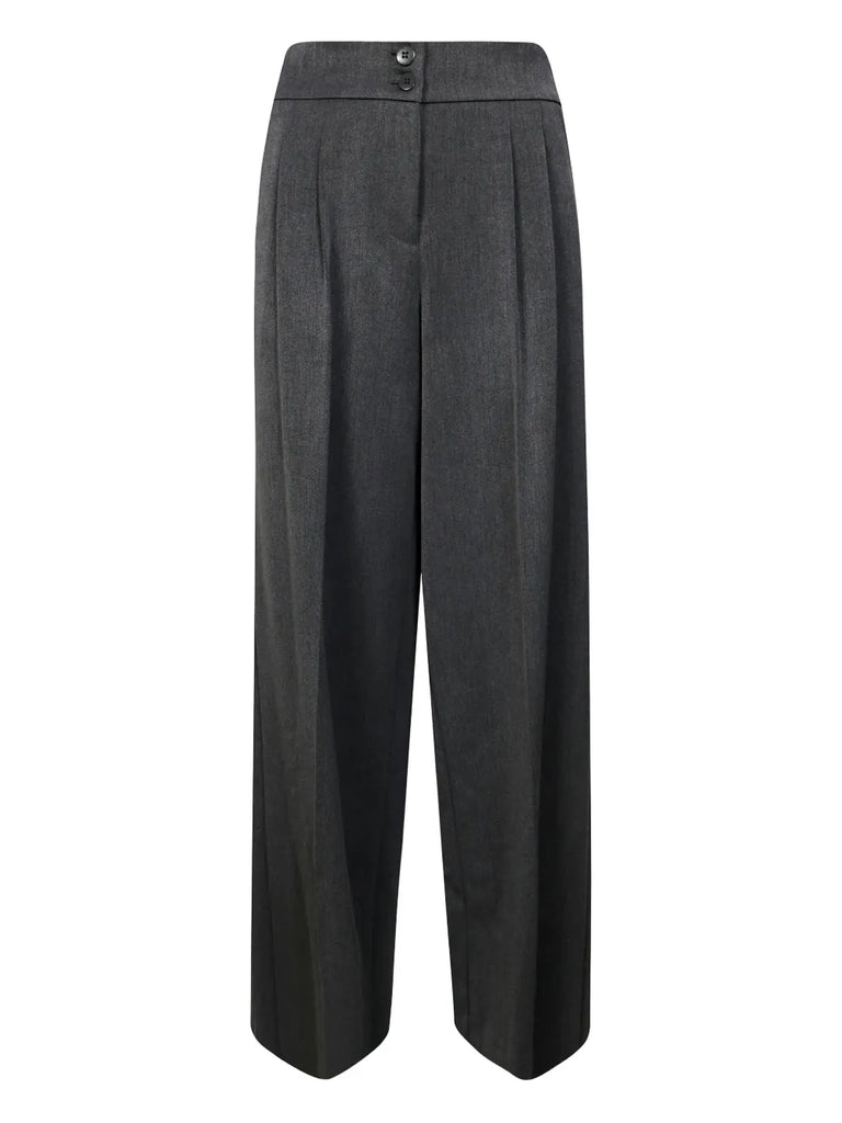 PATRIZIA PEPE Pantalone palazzo in flanella stretch con pieghe e logo