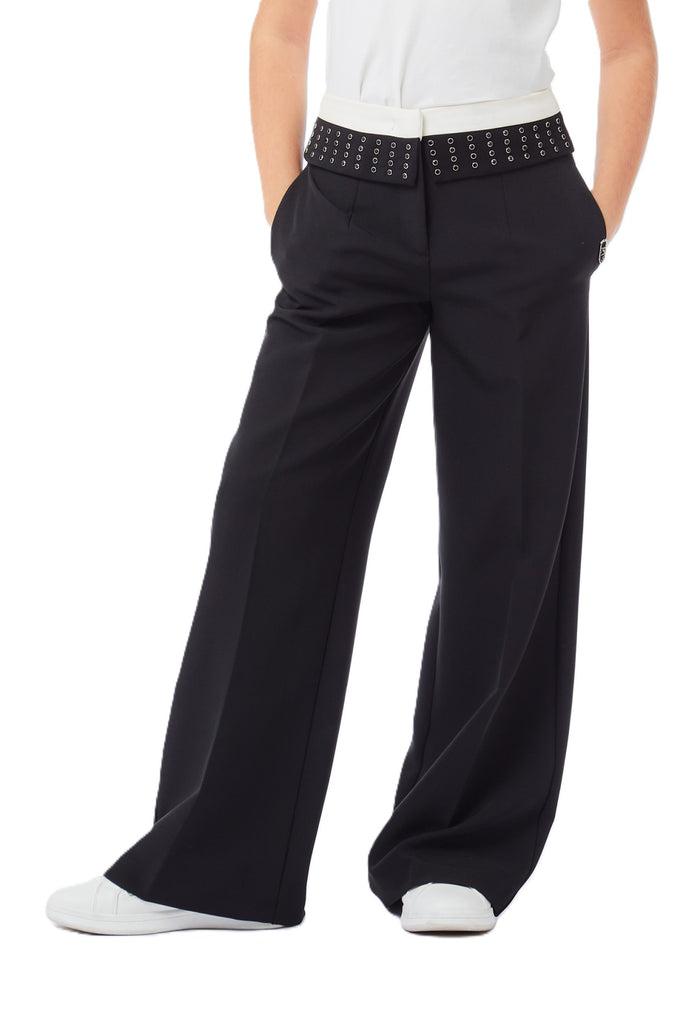 TWIN SET Pantalone palazzo in misto viscosa stretch con logo