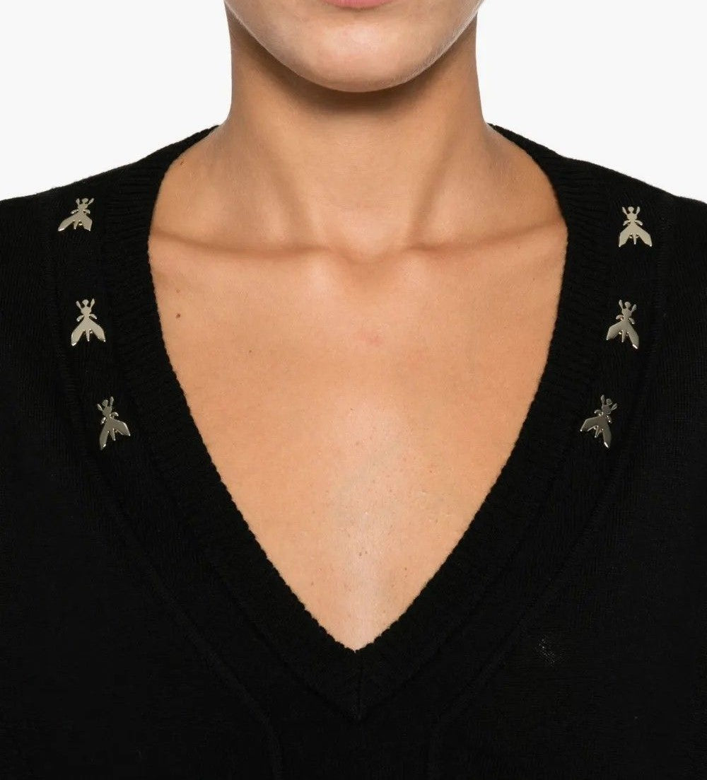 PATRIZIA PEPE Maglia a V in lana con rivetti e logo