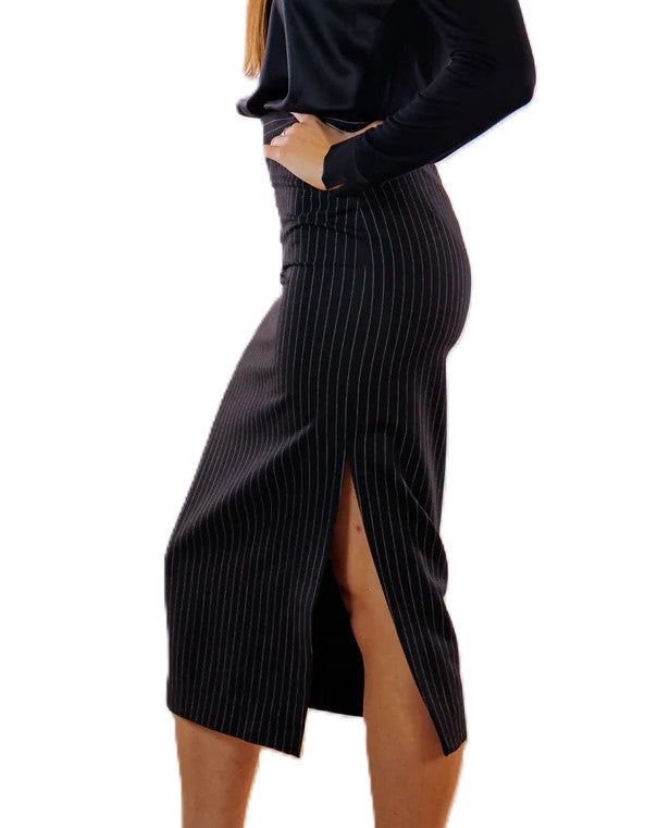 NO-NA' Gonna longuette gessata in viscosa stretch con spacco e logo