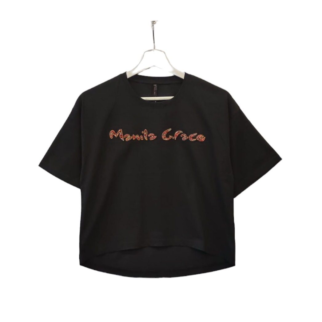 MANILA GRACE T-shirt in jersey di cotone stretch con ricamo e logo - 12 / Nero è in arretrato e verrà spedito non appena sarà di nuovo disponibile.